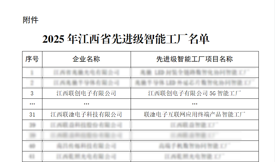 近日,江西省工业和信息化厅正式公布2025年江西省“先进级智能工厂”名单,186家企业入选。其中米兰官方在线入口,米兰(中国)、江西联淦电子科技有限公司2家联创电子系企业名列榜单。这标志着公司在智能制造领域的创新成果再次获得政府权威认可。